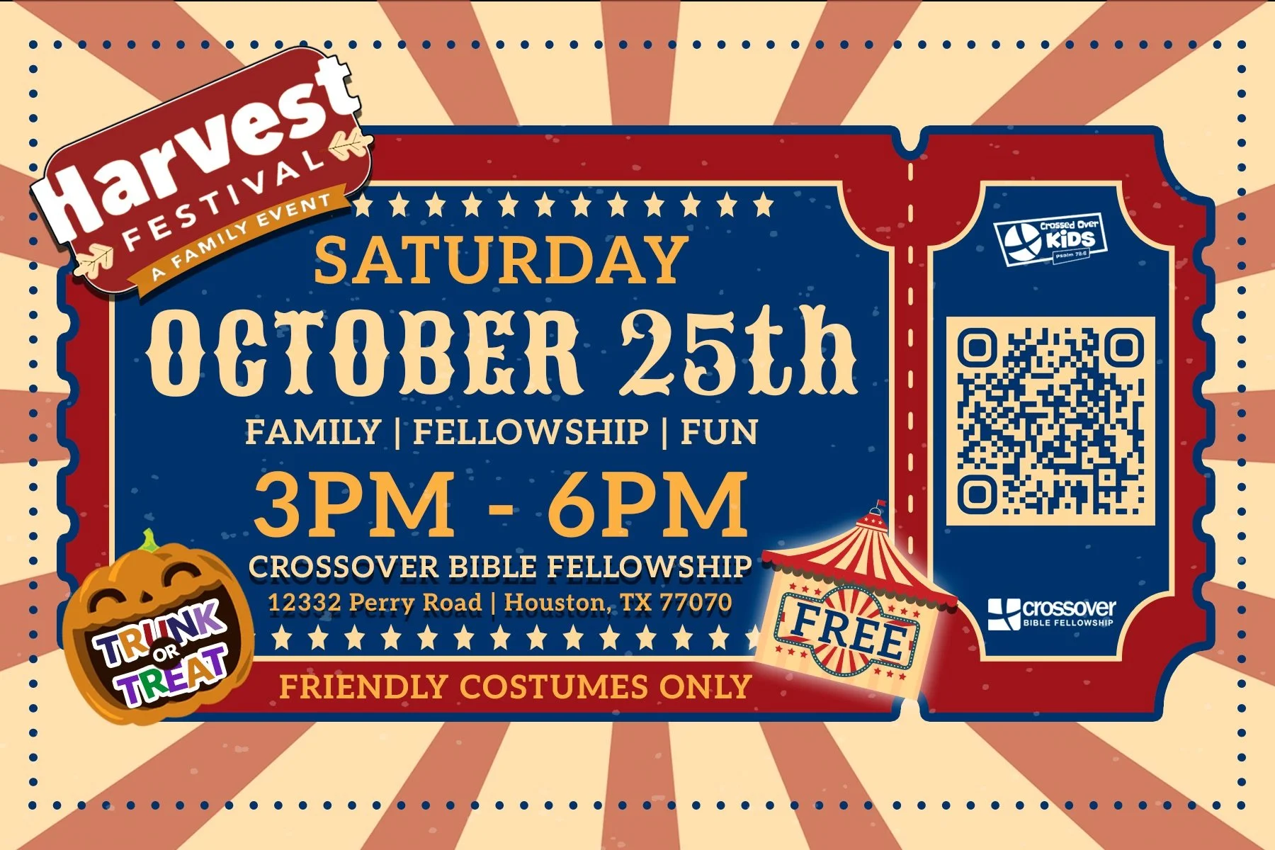 Oct 25 Crossed Over Kids Harvest Festival Saturday, October 25, 2025 3:00 PM 6:00 PM 12332 Perry Road Houston, TX, 77070 United States (map) Google Calendar ICS View Event →
