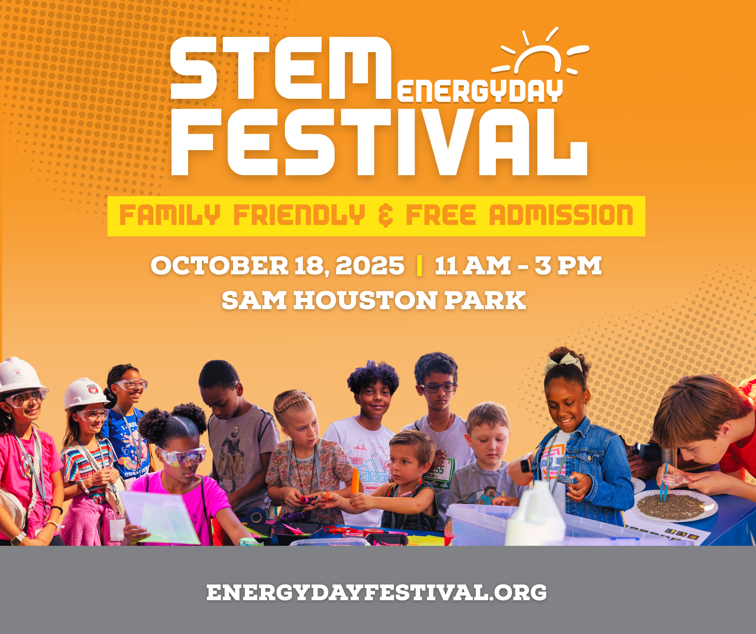 Oct 18 Energy Day STEM Festival Saturday, October 18, 2025 11:00 AM 3:00 PM Sam Houston Park (map) Google Calendar ICS View Event →